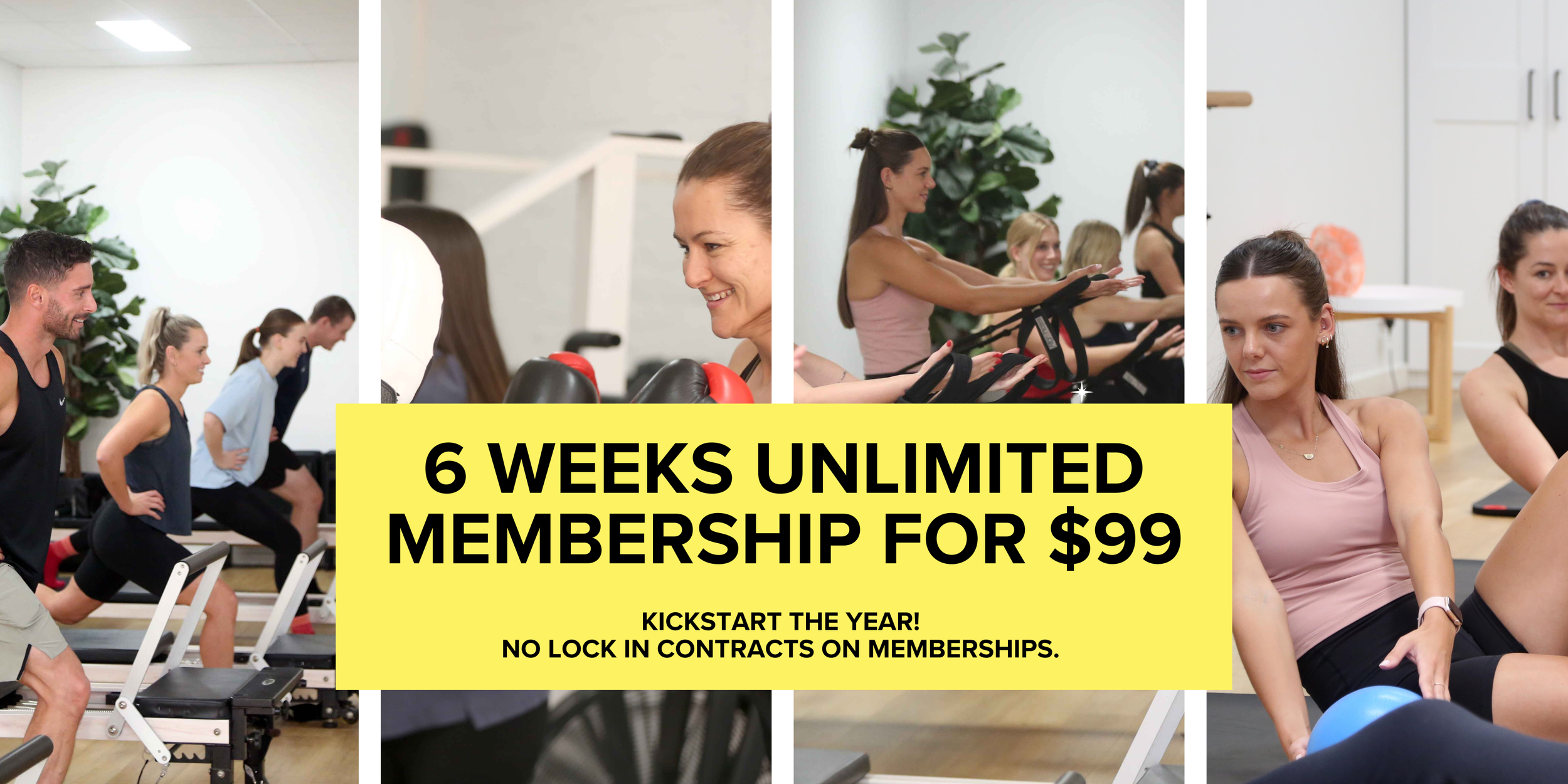 We run Reformer Pilates, Mat Pilates, Barre, Yoga, Boxing, Strength Training and Resistance Training.